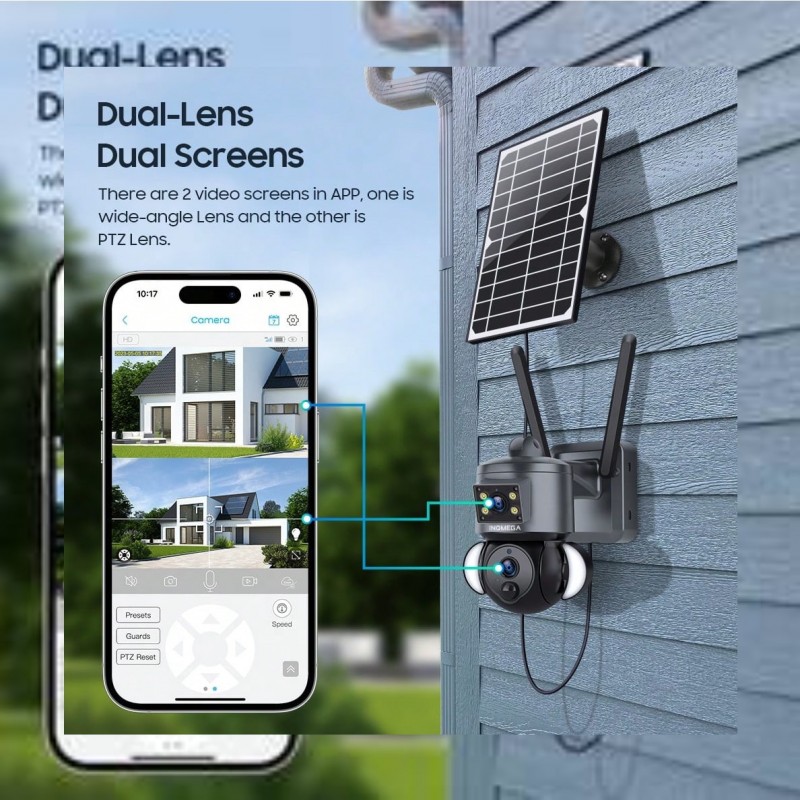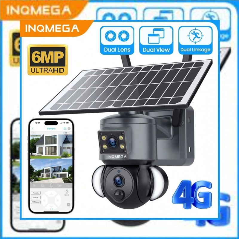 1 pieza INQMEGA Cámara de solar de 6MP 4G LTE con doble lente, detección de movimiento PIR y notific ₦568,690 |