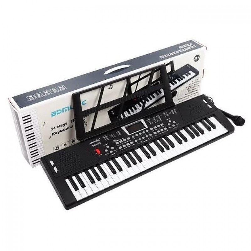 This is a mini Lighting 54keys children piano keyboard. It can be operated by batteries( unscrew the battery compartment at the back side) or DC Adapter (the batteries are not Included) Features: